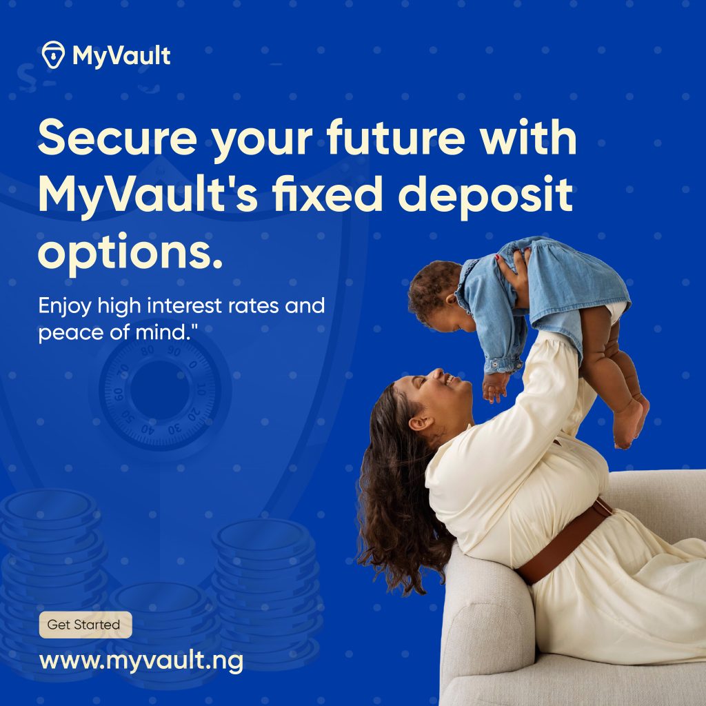 Secure your future and enjoy peace of mind with MyVault’s high-interest fixed deposit options. Whether you’re planning for your child’s future or just want to grow your savings safely, we’ve got you covered. Visit www.myvault.ng today and take the first step towards financial security.